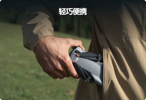 Mini 5 Pro 采用超轻可折叠机身,巴掌大小,轻松收纳进背包或口袋,随身携带更方便。内置 42GB 大容量存储,想拍就拍,精彩都能装下。